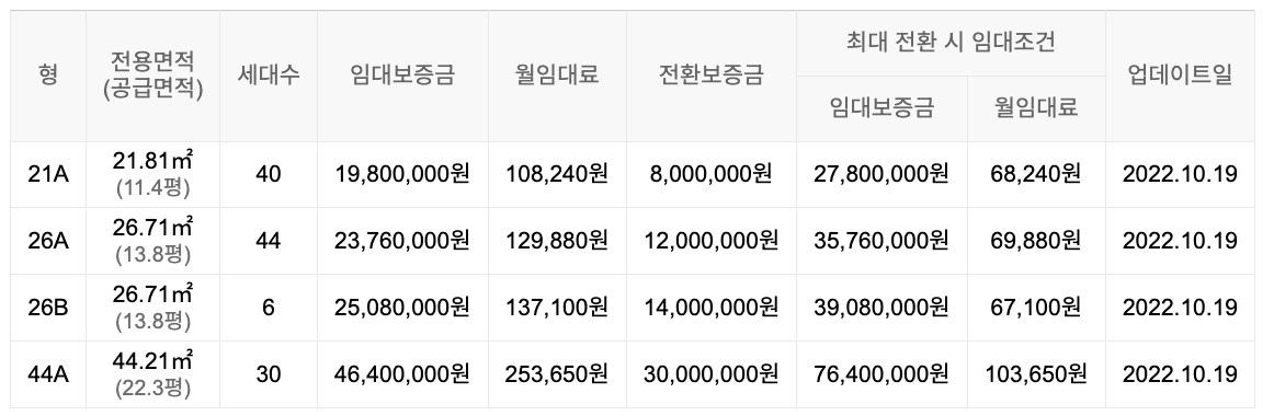 임대보증금 및 월 임대료는 입주자 모집공고일 기준이며, 보증금 최대 전환 시 변동될 수 있습니다.